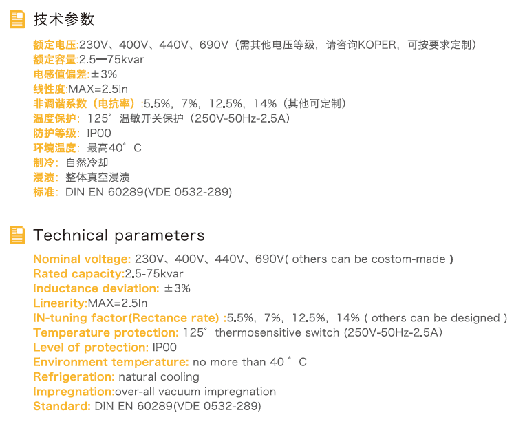 KOP-R滤波电抗器,专为谐波含量高的供电系统设计。铁芯采用晶粒取向的优质冷轧硅钢片,导磁性能高,涡流小,噪音小,空载损耗低。绕组采用具有极好稳定特性的优质纯铜导体,体积小,散热快,导电性能好,载流量大,损耗低。