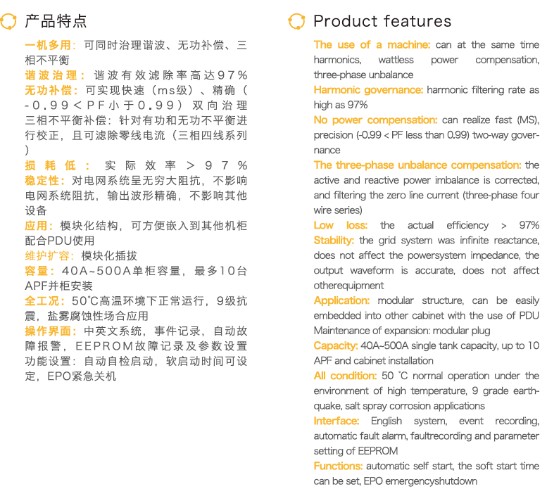 | 越来越频繁的配电中断、配电安全事故、设备工作异常、越来越高昂的配电与用电设备维护费用、莫名其妙的产品品质问题,这些问题造成经济损失正在迅速扩大,甚至威胁生命安全。您的电气系统可能正受到以下问题的困扰:断路器无故跳闸、无功补偿电容器频繁故障、变压器、母排、电机等噪音不正常、变压器及电缆N线过流过热、功率因数低、视在电流远高于有功电流系统损耗大、PLC通讯、过程控制器、精密仪器仪表工作受干扰、突然断电或电压波动造成生产损失、电网断电时柴油机启动带载失败等等。对于用户设备及公用配电网来说,电能质量相关指标就像环境指标一样,直接影响到设备发挥其效能、使用寿命及效率,甚至直接损坏用电设备,导致用电瘫痪等更严重后果!因此用户配电系统的电能质量治理目的主要是为了提升用户设备的电能质量环境,提高用电设备的可靠性、寿命、用电效率,最大限度发挥设备性能!而由电容与电抗组成的传统LC无源滤波器,通过调节电容、电抗参数改变低通频率的设计方式,针对性滤除某次谐波,该补偿方式存在不可解决的弊端:电容器降容引起谐振点偏高诱发系统谐振、LC回路易过流发热频繁故障,长期工作甚至爆炸烧毁、谐波补偿精度低,响应速度慢。kopSin有源电力滤波器主要组成部分为全控半导体器件与并网电抗,通过控制器实时监测负载电流,采用业界最为先进的电流分解算法与控制算法,实现实时的谐波、无功、不平衡补偿,并且规避传统LC补偿谐振的风险,是高性能电能质量治理装置。 |