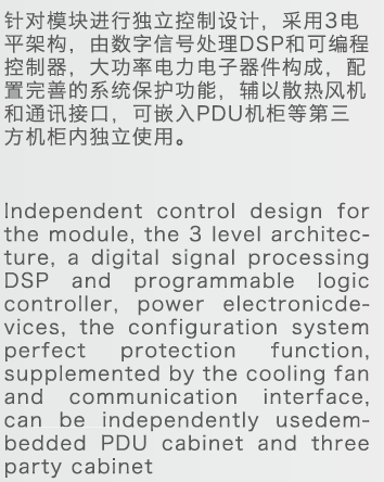 真并联、真插拔式模块化设计 各模块独立运行 最高的可用性,可在线扩容与维护 设计灵活,可作为配电系统标准器件