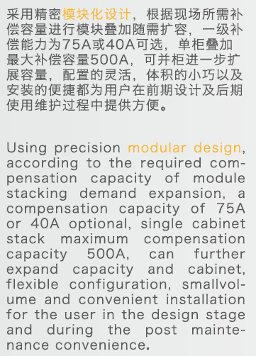 | 三电平设计,开关纹波业界最小,ClassA级EMI标准,自动限流运行与全面的故障保护功能,适应油机供电、电压幅值频率偏差大、电压畸变大的环境,高低温、高湿、盐雾、腐蚀、雷击、震动等均通过国家认证试验机构的测试,单机容量覆盖30-500A,最大可叠加到750A。2-50次谐波、感性与容性无功、不平衡补偿、零线补偿,自由选择补偿组合。安装设计方式灵活多样,能够满足医院、场馆、学校、游乐设施、石油、石化、化纤、电力、汽车、电子、交通、通讯、楼宇、煤矿、装备制造、机加、橡胶、钢铁、冶金、港口等行业的电能质量治理。 |